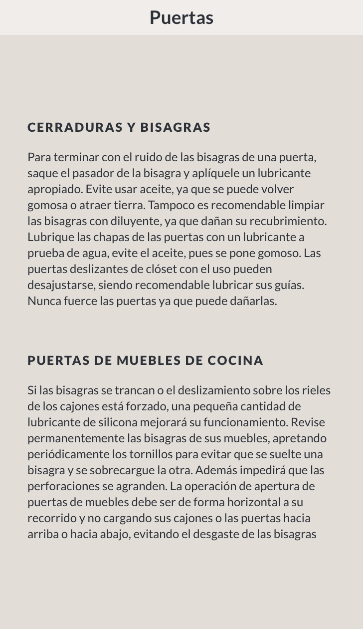 Cierra las puertas con cuidado y mantén bisagras y cerraduras lubricadas para asegurar su correcto funcionamiento.